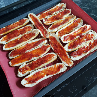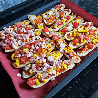 Die Baguettes lassen sich nach Belieben belegen, ob mit Thunfisch 🐟, Gemüse 🥦oder nur mit viel Käse. 🧀