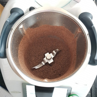 Zur der restlichen Hälfte Backkakao und 60g Milch zugeben und 12sek/Stufe5 vermengen. Alles mit dem Spatel nach unten schieben und erneut 5sek/Stufe 5 vermischen.