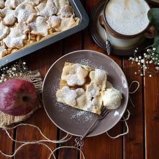 Gedeckter Apfelkuchen aus Mürbeteig, schmeckt einfach himmlisch.