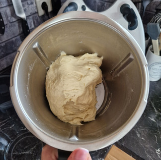 Restlichen Zutaten zugeben und 3min/Knetstufe verkneten.