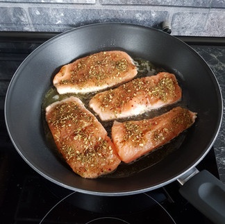 Wenn du dich für TK Lachs entschieden hast, solltest du den schonend im Kühlschrank auftauen lassen. Danach abtupfen und mit etwas Lachs Gewürz bestreuen.