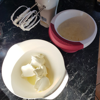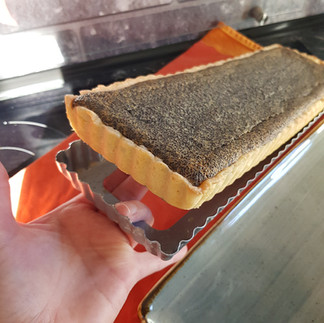 Eine tolle Mohntarte ist entstanden, obendrauf mit einer Creme aus Mascarpone und Sahne.