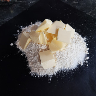 Alle Zutaten auf die Arbeitsunterlage/Arbeitsfläche geben und mit Händen gut verkneten
