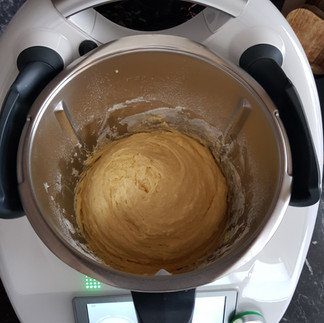 Butter in Stücken mit allen restlichen Zutaten für den Boden in den Mixtopf geben und alles miteinander 35sek/Stufe5 vermengen.