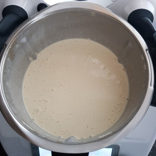 Dann gibt ihr Sonnenblumenöl, Mehl, Backpulver und Milch hinzu und vermischt alles miteinander 1,20min/Stufe 5. Den Teig in eine große Schale umfüllen und ca.15-20min quellen lassen.